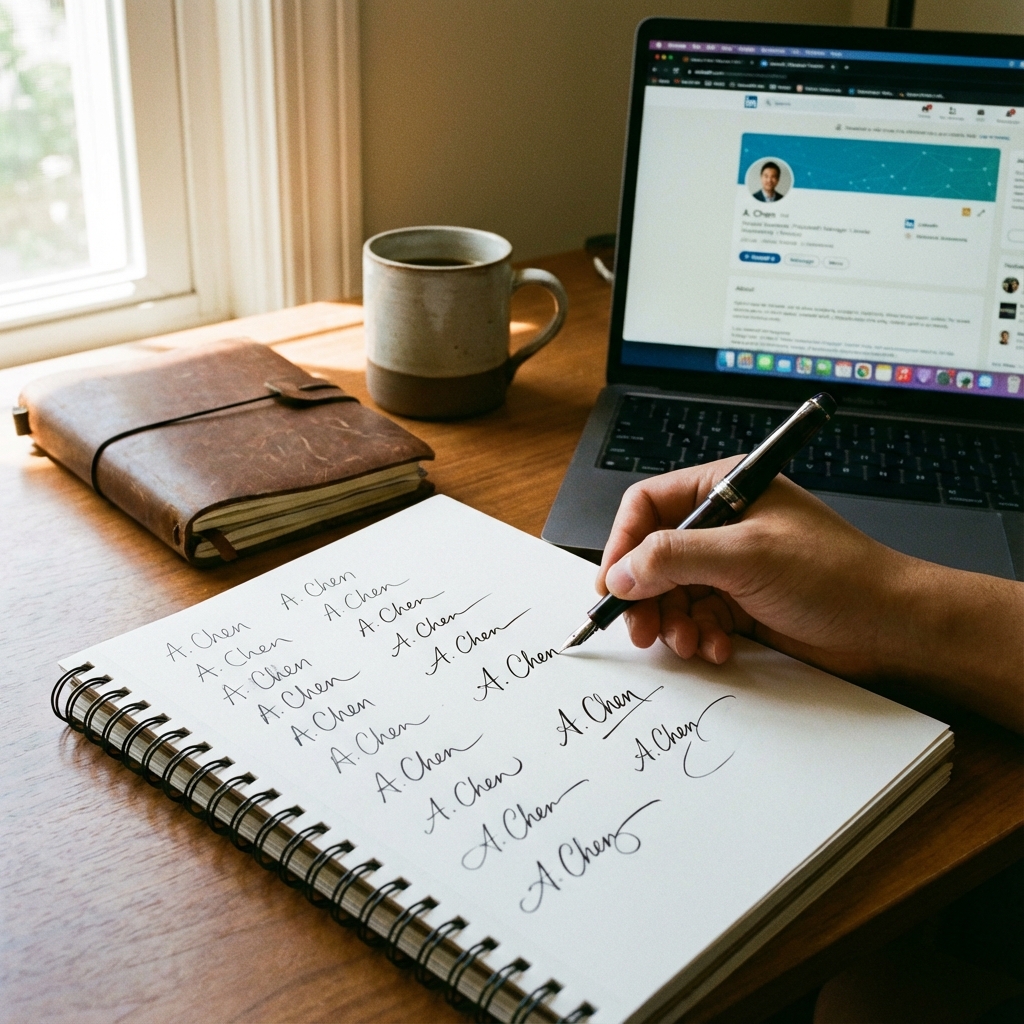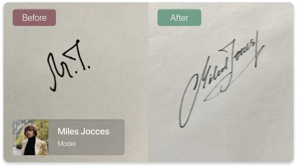 We design custom handwritten signatures for professionals, founders, and creators — crafted by experienced calligraphers and easy to learn in under 1 hour.