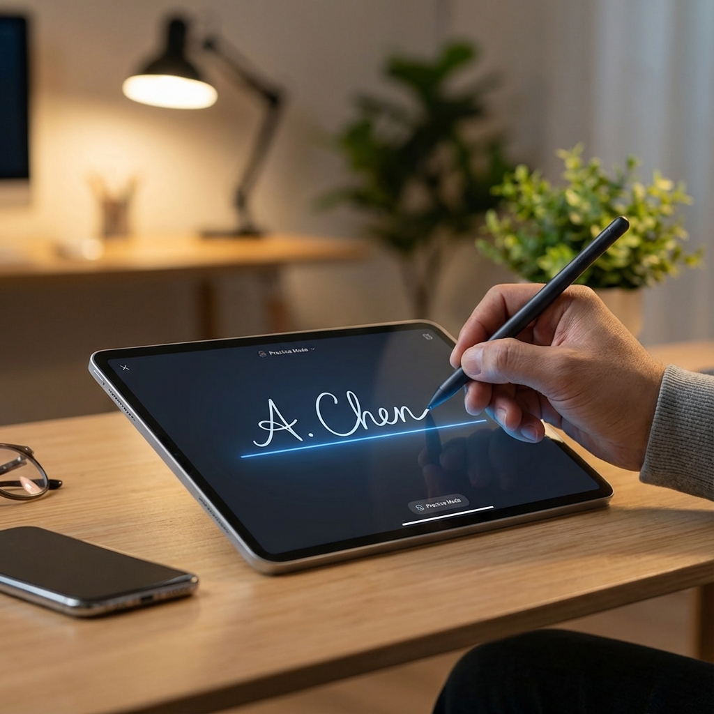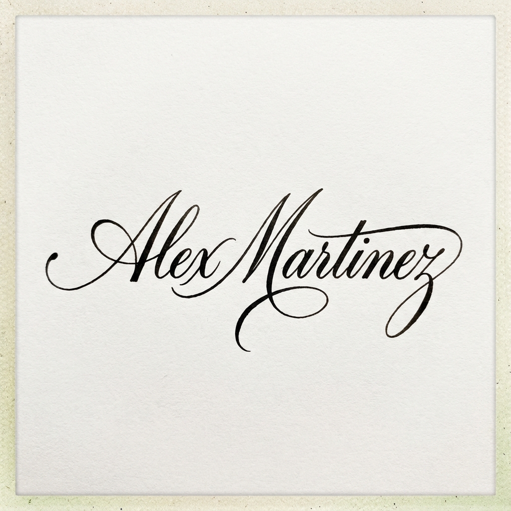 Flowing cursive with balanced loops for confident signing.